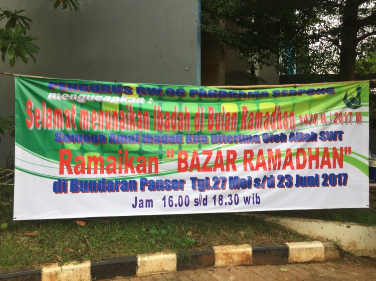 Dalam rangka memeriahkan dan menyemarakan Bulan Suci Ramadhan 2017 ini, kami pengurus RW.06 yang diprakarsai oleh Ibu-Ibu PKK-RW.06 bermaksud untuk menyelenggarakan *Bazar Ramadhan “DARI WARGA UNTUK WARGA”* di area *Bunderan Perumahan Panorama Serpong*, dengan ketentuan pelaksanaan sebagai berikut: